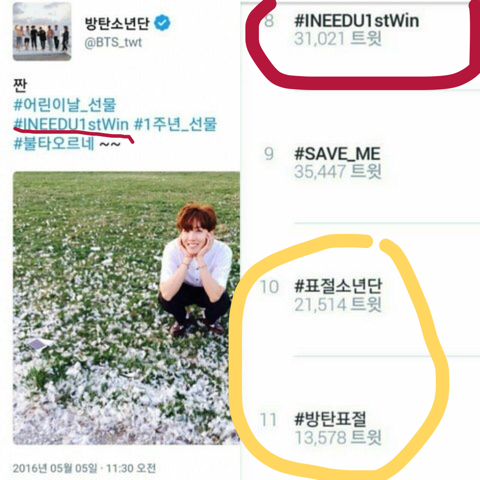 But then, after on that day, a Bangtan fellow member used #INEEDU1stWin (T/N: to modify upwards the trending tags)..