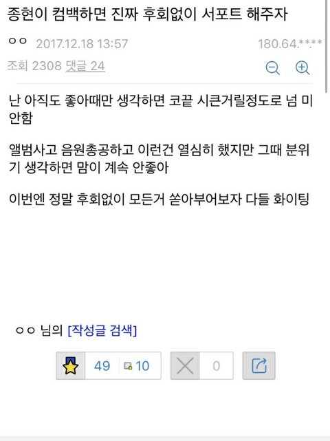 “If Jonghyun makes a comeback, I’ll back upward him without regret”